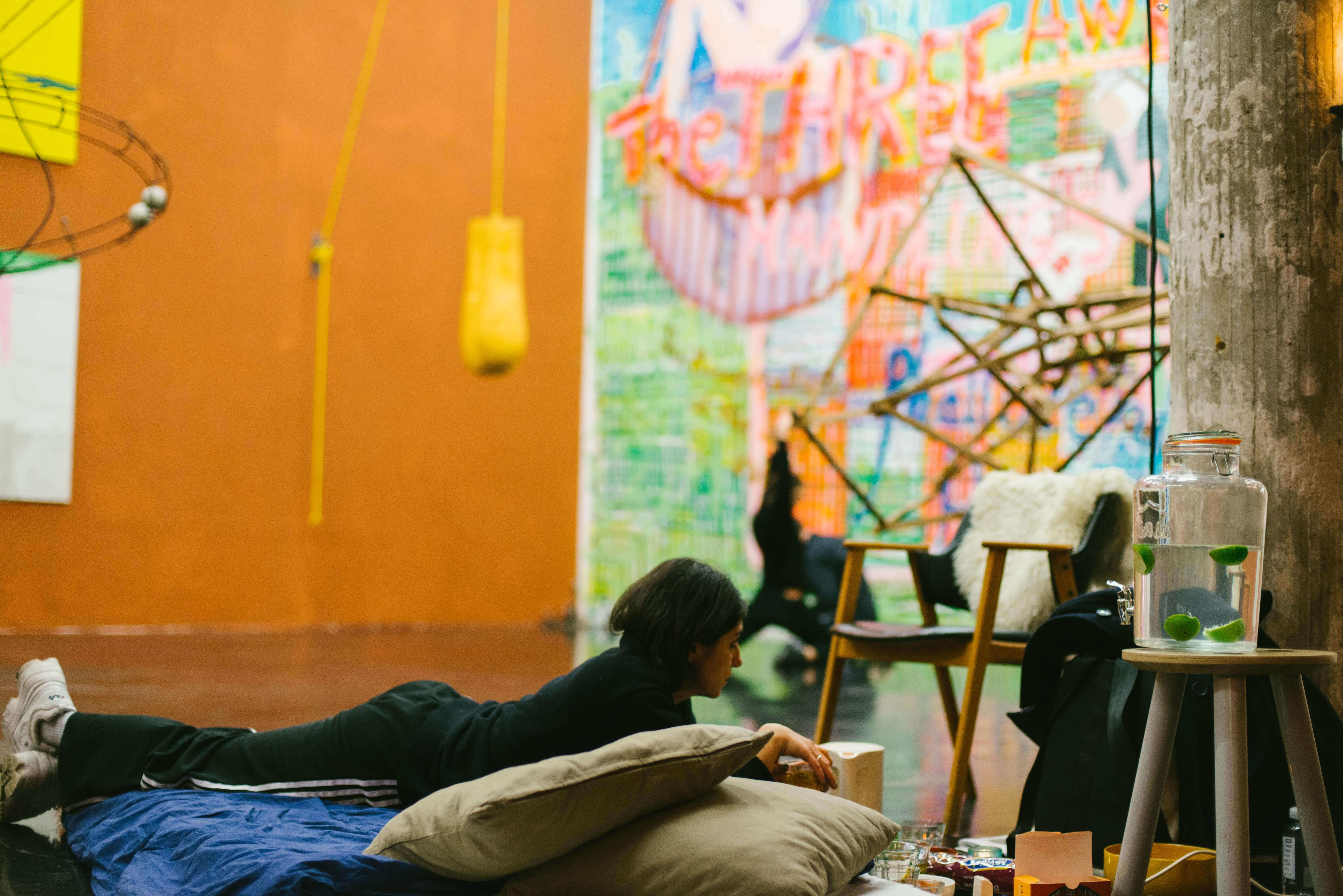 The dancers explore an insomniac framework, particularly that of 'post-clubbing' in which the stimulating effects and aftereffects of hedonistic nocturnal life is examined. They perform in a dissociative state of depersonalization, allowing them to resource from something other than conditioned subjectivity. Instead, they take charge of wandering intensities. The identifiable traits of these affects disperse, giving rise to erratic moods across perceptual spectrums. By inhabiting liminal and viscous spaces, the performers explore multiple sensibilities, navigating within the condition of metathreshold (a ceaseless transition, where boundaries dissolve and transformation occurs), where ambiguity itself sculpts tangible states.